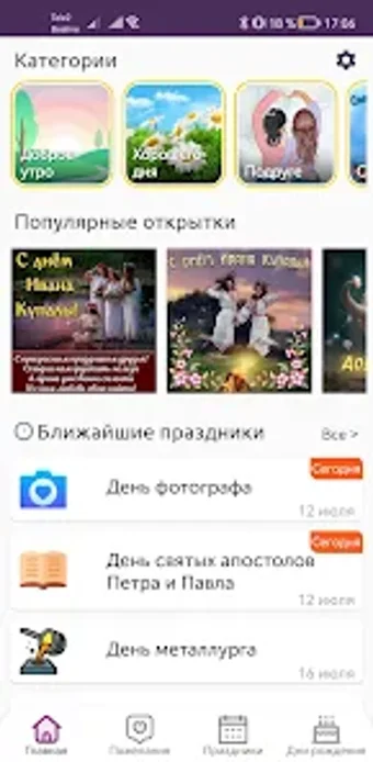 Приложение предлагает разнообразную коллекцию открыток, гарантируя, что вы найдете идеальную для каждого случая. Будь то день рождения, годовщина, свадьба или любое другое особое событие, здесь есть открытки, подходящие для всех вкусов и предпочтений. Открытки продуманно разработаны, с высококачественной графикой и захватывающими сообщениями.